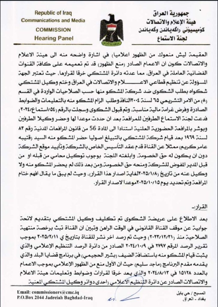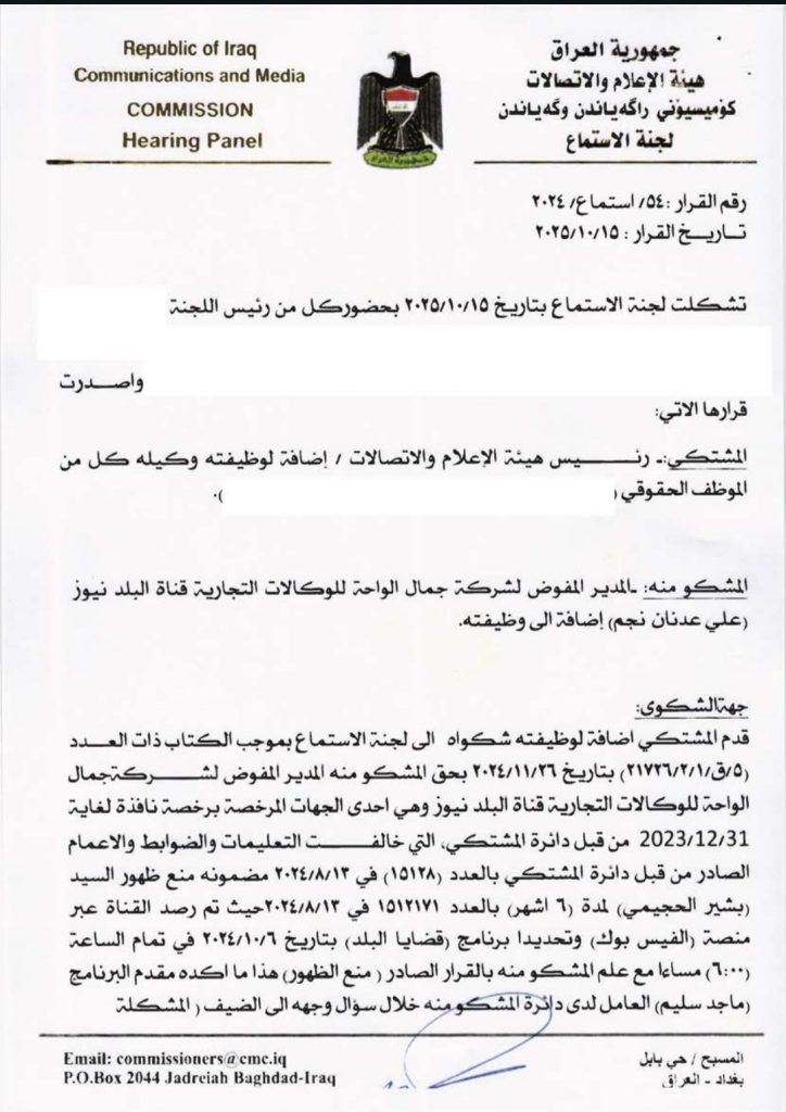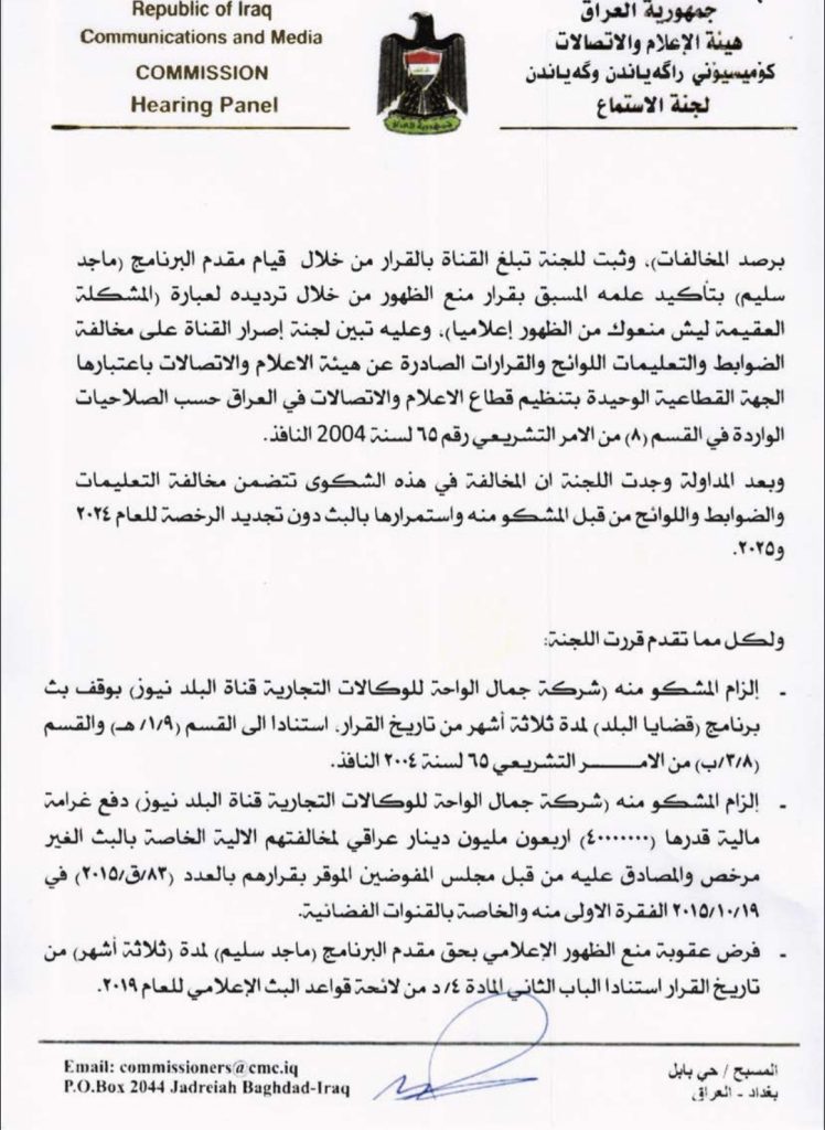 قناة البلد نيوز تواجه غرامة مالية وإيقاف بث برنامج قضايا البلد لمدة ثلاثة أشهر