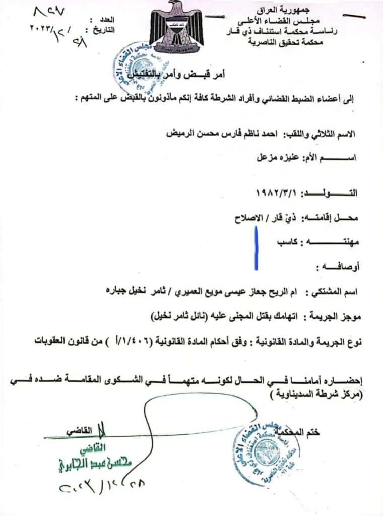 كشفت مصادر مطلعة، عن ضغوط تمارس على مجلس القضاء الأعلى لإطلاق سراح أحمد ناظم فارس محسن الرميض الفائز بانتخابات مجالس المحافظات عن محافظة ذي قار والمتهم بجريمة القتل.