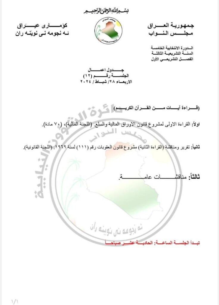 جدول أعمال مجلس النواب ليوم غد الأربعاء