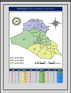 طقس العراق … غائم مع ارتفاع طفيف بدرجات الحرارة