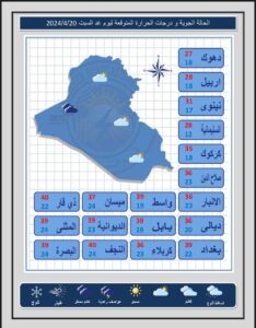الانواء الجوية تنشر توقعات الطقس فيما اكدت هطول امطار بداية الاسبوع القادم