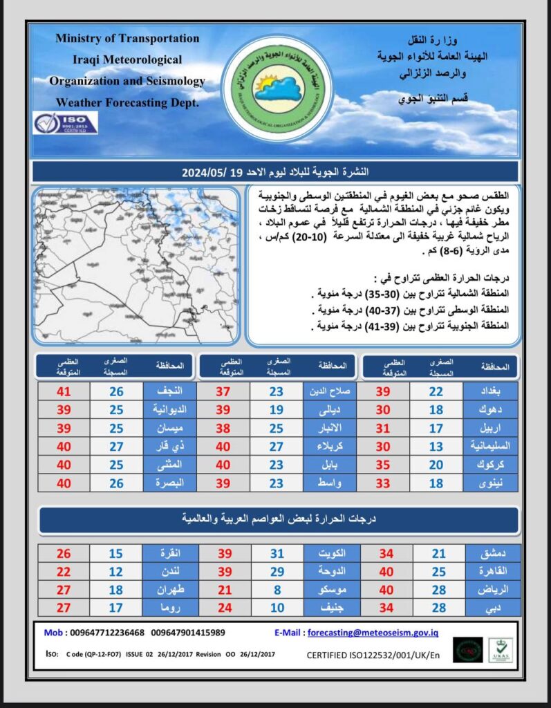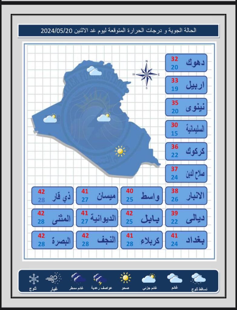 طقس البلاد .. غائم جزئي الى مشمس مع ارتفاع قليل بدرجات الحرارة