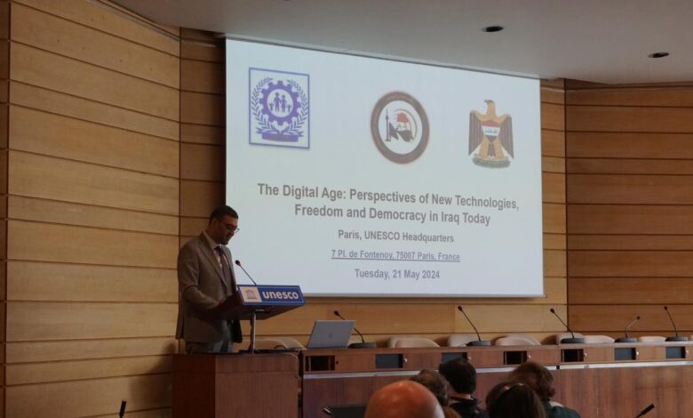استعرض رئيس هيئة الإعلام والاتصالات اليوم الأربعاء ، في مقر اليونسكو بباريس تطورات المشهد الإعلامي والتجربة العراقية الفريدة في الشرق الأوسط