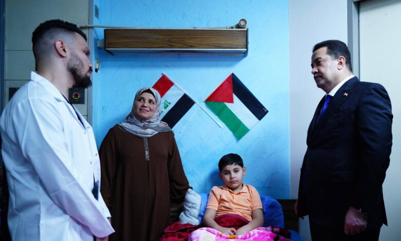 تفقد رئيس مجلس الوزراء محمد شياع السوداني، اليوم السبت، الجرحى الفلسطينيين الراقدين بمدينة الطب في بغداد.