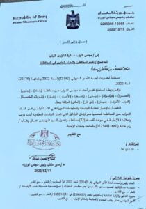 وفي وقت سابق، أعلن مكتب رئيس الوزراء محمد شياع السوداني عن إرسال استمارة لمجلس النواب تتضمن تقييم النواب للمحافظين في (13) محافظة.