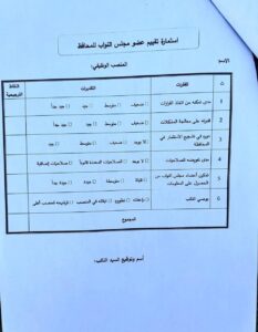 وكذلك تضمنت استمارة التقييم (6 فقرات تتعلق الأولى بمدى تمكن المحافظ من اتخاذ القرارات، والثانية بقدرته على معالجة المشكلات، والثالثة دوره في تشجيع الاستثمار في المحافظة، والرابعة مدى تفويضه للصلاحيات، والخامسة تمكين أعضاء مجلس النواب من الحصول على المعلومات، وأخيرا توصيات النائب، فيما تضمنت تقديرات النواب للمحافظين مؤشرات “ضعيف، ومتوسط، وجيد، وجيد جدا، في حين التوصية تضمنت اعفاء المحافظ أو تطويره أو ابقائه في المنصب أو ترشيحه لمنصب أعلى، وذيلت الاستمارة بطلب اسم وتوقيع النائب”.