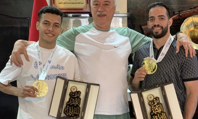 وقال النادي في بيان إن “رئيس مجلس ادارة نادي الصيد الدكتور حسنين فاضل معلة احتفى بالابطال المنتخب العراقي الذي حصدو المداليات الذهبي في بطولة اسيا بالسعودية مصطفى محمد وهيب بوزن 80 كغم مؤمن علي نايف بوزن 70 كغم”.