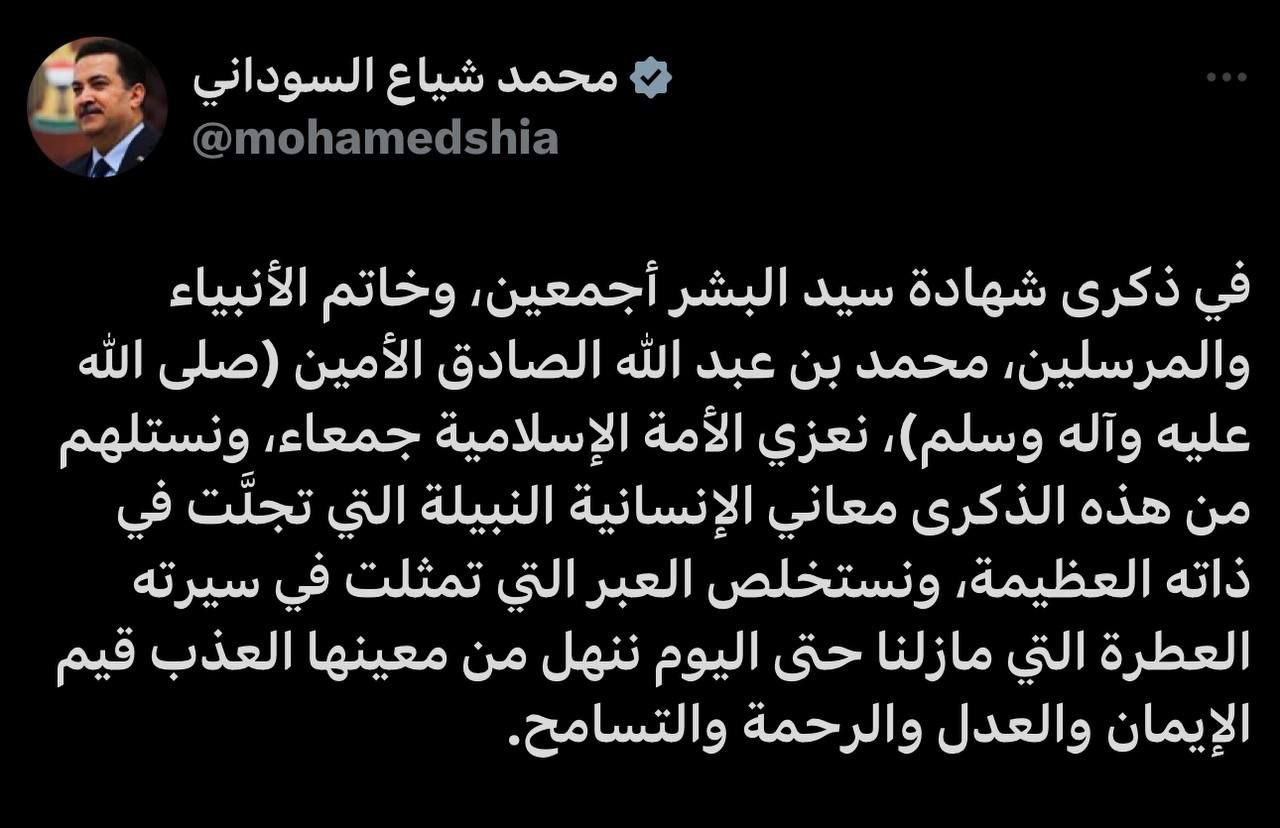 السوداني يعزي بوفاة النبي محمد (ص)