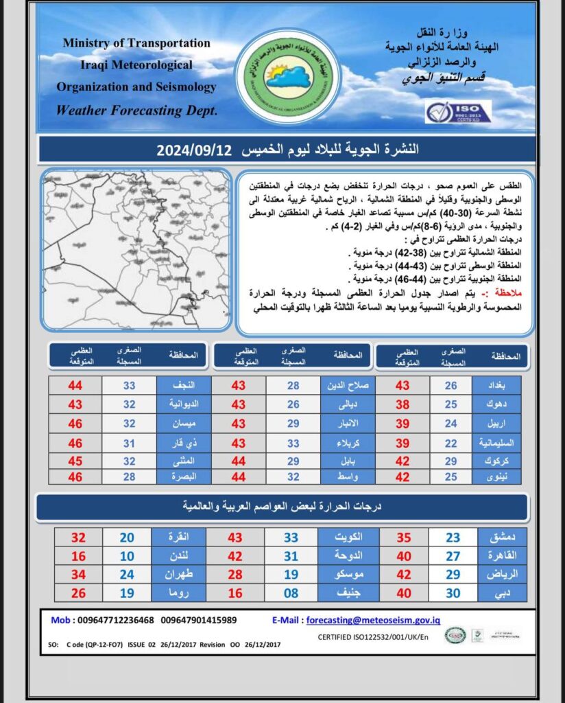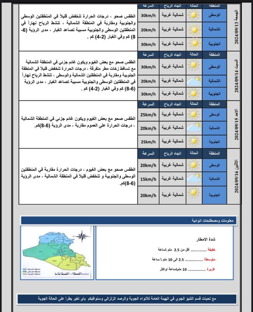 توقعات الطقس للأيام الأربعة المقبلة