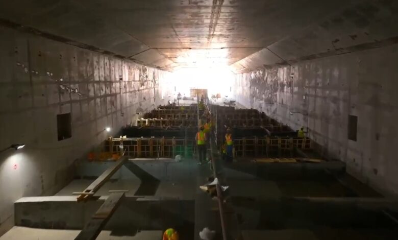 فيديو.. استمرار أعمال صب الأرضيات الكونكريتية (الأوزان) في النفق المغمور ضمن مشاريع ميناء الفاو الكبير
