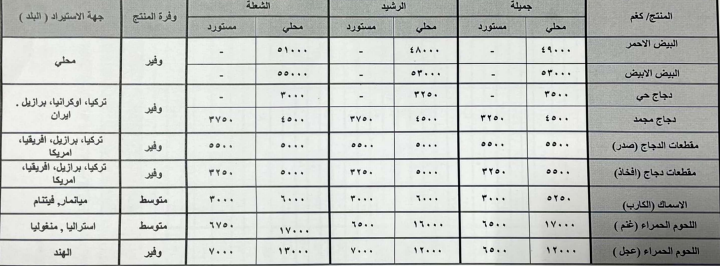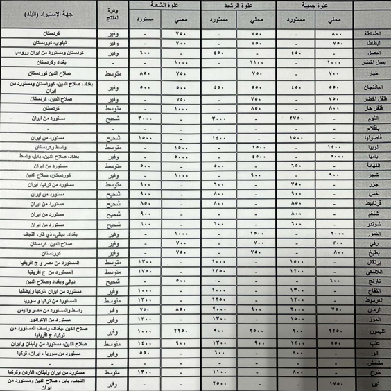 اسعار الخضار في الاسواق المحلية كما صدرت من وزارة الزراعة