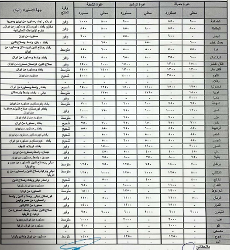اسعار الخضروات في الاسواق العراقية اليوم الثلاثاء