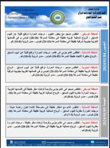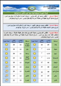 طقس البلاد :توقعات بأمطار نهاية الاسبوع