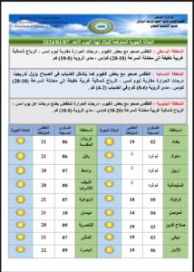 احوال الطقس :أمطار خلال اليومين المقبلين